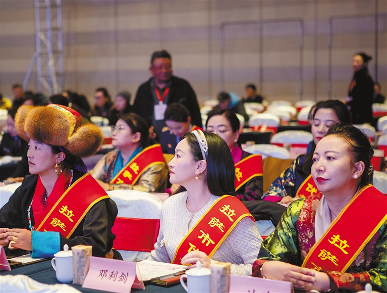 图④:邓利剑作为拉萨市三八红旗手标兵接受表彰。