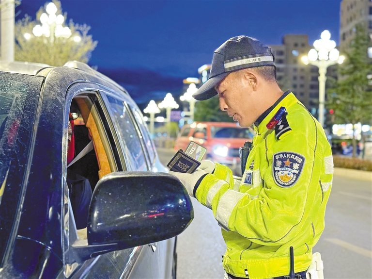 图为拉萨交警在夜查车辆。本报记者 鹿丽娟 摄