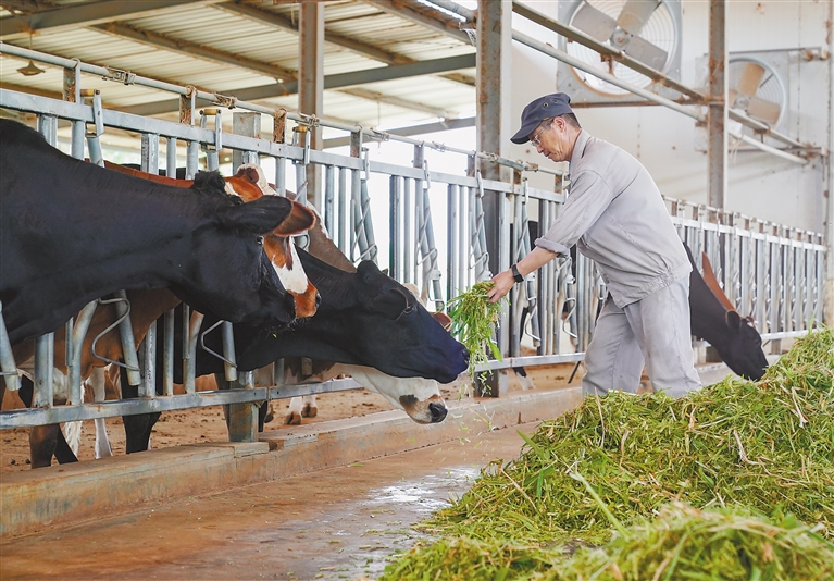 毛里塔尼亚80%以上的国土被沙漠覆盖,炎热干旱,土壤贫瘠,风沙肆虐,植物不易生存。2017年,中国援毛里塔尼亚畜牧业技术示范中心技术合作项目在伊迪尼村正式启动。多年来,中国专家成功引种紫花苜蓿,实现规模化种植,解决了当地饲草料短缺问题。随后,多个牧草品种陆续在撒哈拉沙漠推广。在奶牛养殖与育种方面,示范中心与国内牧业公司开展技术合作,选育适应性强、耐粗饲的种牛,提高了牧区的养殖效益,为改善牧民生活、推动当地畜牧业可持续发展做出积极贡献。