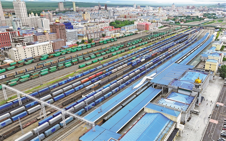 记者7月25日从中国铁路哈尔滨局集团有限公司获悉,作为中欧班列东通道的重要铁路口岸之一的满洲里铁路口岸,自2013年开行中欧班列以来,至今累计通行量已突破30000列,发送货物近300万标箱,中欧班列通行量约占全国开行总量的三成,为服务高质量共建“一带一路”注入了更多动能。