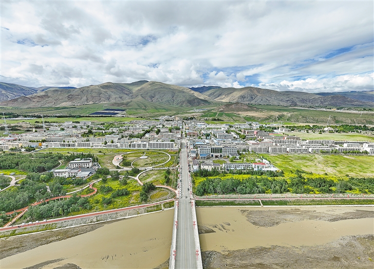 这是7月20日拍摄的隆子县县城和沙棘林生态公园(无人机照片)。