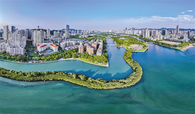 图为2024年9月3日拍摄的福建厦门筼筜湖和周边城市生态景观(无人机照片)。新华社记者 魏培全 摄