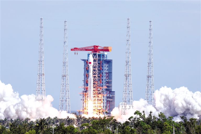 图为7月30日15时49分,我国在海南商业航天发射场使用长征八号甲运载火箭,成功将卫星互联网低轨06组卫星发射升空,卫星顺利进入预定轨道,发射任务获得圆满成功。