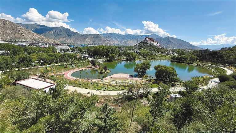 8月1日,拉萨团结公园暨环布达拉宫水系生态带药王山环境整治工程项目正式完工,面向民众全面开放。拉萨团结公园坐落于布达拉宫西麓、药王山脚下,公园紧扣“显山、亮水、见绿、串湖、润城”的设计理念,让人文古迹与自然景致相映成趣。