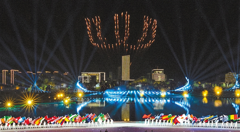 图为8月7日,演员在开幕式上表演。 新华社记者 陈振海 摄