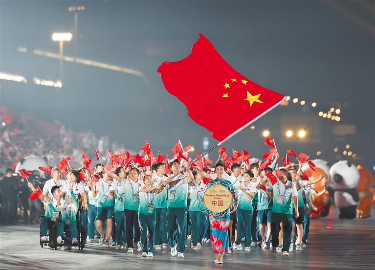 图为8月7日,中国体育代表团在开幕式上入场。 新华社记者 陈斌 摄