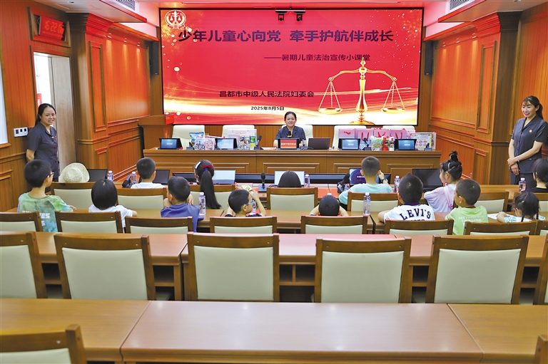 近日,昌都市中级人民法院妇委会牵头开展“少年儿童心向党 牵手护航伴成长”暑期关爱儿童法治宣传活动。干警们通过“以案释法”“看图说法”等方式,将真实案例融入漫画,讲解儿童权益相关法律知识,剖析未成年人常见法律问题。