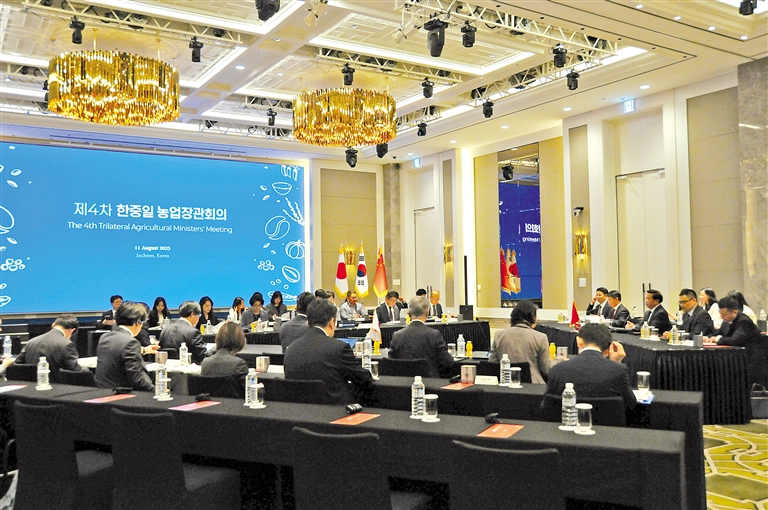 图为8月11日在韩国仁川拍摄的第四届中日韩农业部长会议现场。