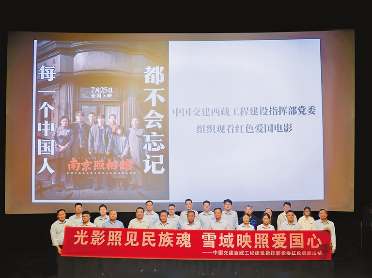 为进一步深化爱国主义教育,近日,中国交建西藏工程建设指挥部党委组织党员干部职工开展“光影照见民族魂 雪域映照爱国心”主题观影活动。 图为观影活动现场。本报通讯员 闫盼盼 本报记者 刘斯宇 摄