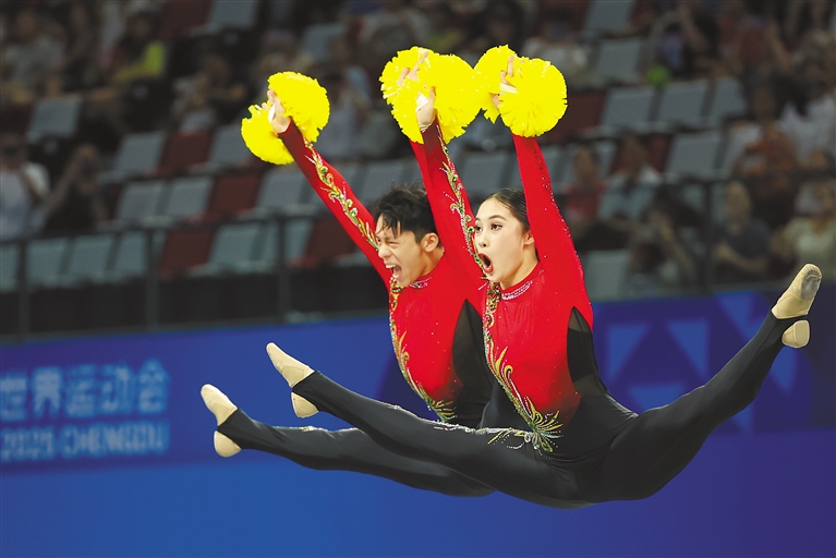 8月16日,在2025年成都世界运动会啦啦操双人花球半决赛第二轮比赛中,中国组合李嘉欣/王亚洲、林奕航/马科唯均进入决赛,美国组合赫夫特/马丁排名第一。