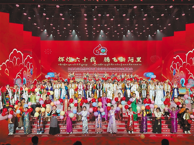 左图:“辉煌六十载·腾飞新阿里”——阿里地区热烈庆祝西藏自治区成立60周年主题晚会,日前在阿里地区影剧院举行。本报记者 永青 洛桑旦增 摄
