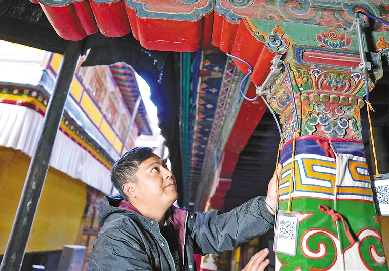 布达拉宫管理处副处长贡嘎扎西介绍:“我们可以监测环境温度、墙体和柱子倾斜角度等,为评估布达拉宫木结构、墙体和地垄的稳定性提供重要数据支撑。”