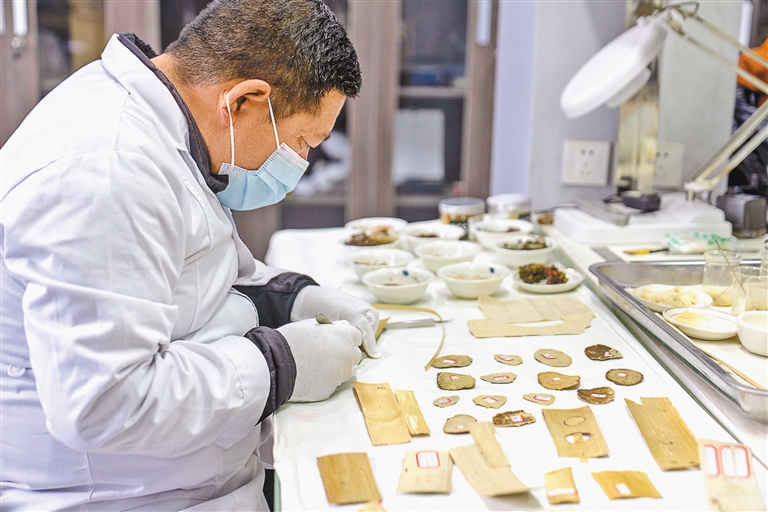 贝叶经是书写在贝多罗树叶上的经文。布达拉宫馆藏的贝叶经数量居世界之最,但因年代久远,少数出现了纤维脱层起翘、粘连等复杂病害,修复难度极大。