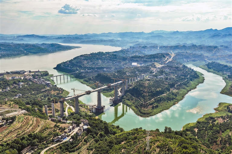 8月18日,由中国铁建大桥局承建的重庆至万州高速铁路(渝万高铁)渠溪河双线特大桥顺利合龙。渝万高铁渠溪河双线特大桥位于重庆市涪陵区珍溪镇,横跨长江支流渠溪河,全长约953米,是全线重难点工程。