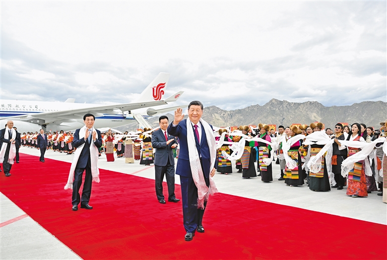 习近平率中央代表团抵达拉萨出席西藏自治区成立60周年庆祝活动
