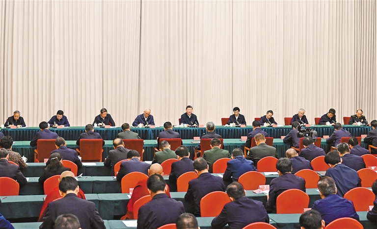 8月20日下午,率中央代表团出席西藏自治区成立60周年庆祝活动的中共中央总书记、国家主席、中央军委主席习近平在拉萨听取西藏自治区党委和政府工作汇报,发表了重要讲话。 新华社记者 谢环驰 摄