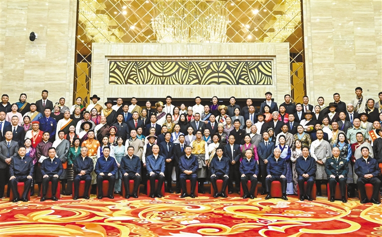 王沪宁、蔡奇、李干杰、何立峰、张国清、王小洪、洛桑江村、胡春华、帕巴拉·格列朗杰和张升民,在西藏工作过的老同志,中央和国家机关有关部门负责同志等参加有关接见。