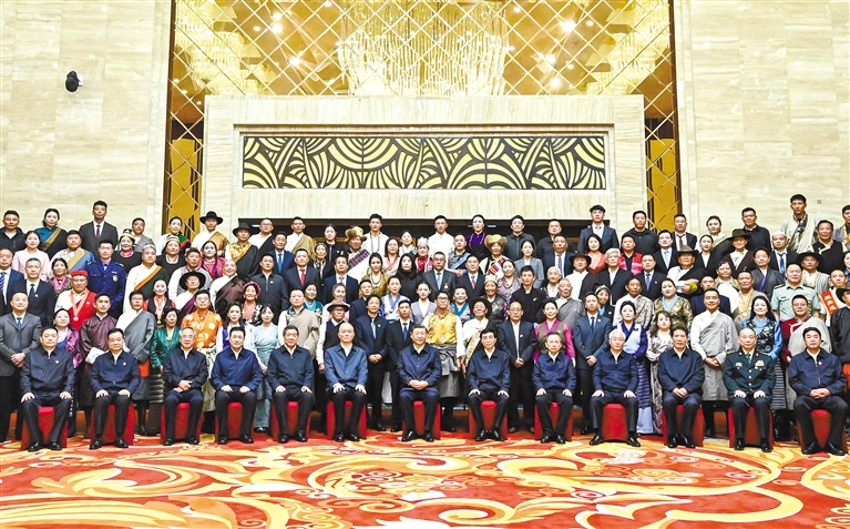 图④:8月20日下午,中共中央总书记、国家主席、中央军委主席习近平在拉萨亲切接见西藏各族各界代表,并同大家合影留念。