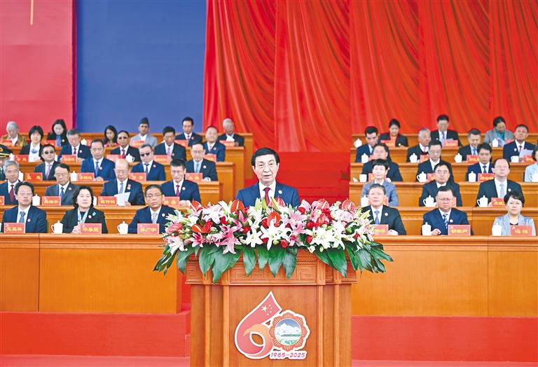 8月21日上午,西藏各族各界干部群众约2万人欢聚拉萨市布达拉宫广场,热烈庆祝西藏自治区成立60周年。中共中央政治局常委、全国政协主席、中央代表团团长王沪宁出席并讲话。新华社记者 李响 摄