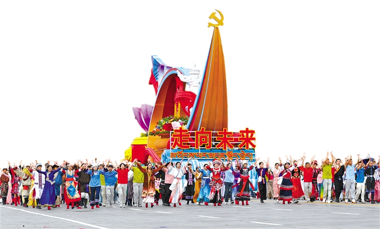 九车连珠,浓缩60年沧桑巨变;万众欢腾,抒发对党和国家的感恩之情。