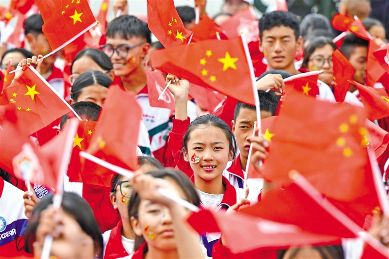 图⑧:群众在庆祝大会现场挥舞旗帜。