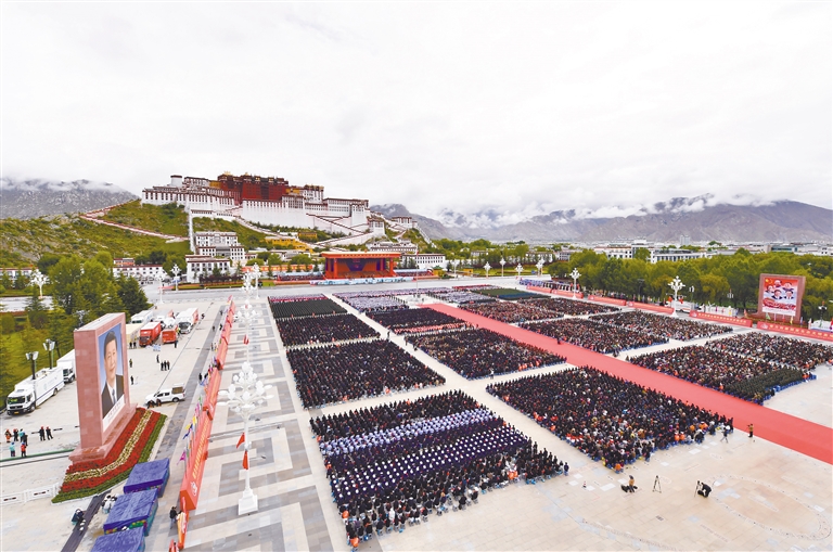 图①:庆祝大会现场。本报记者 索朗旺久 摄