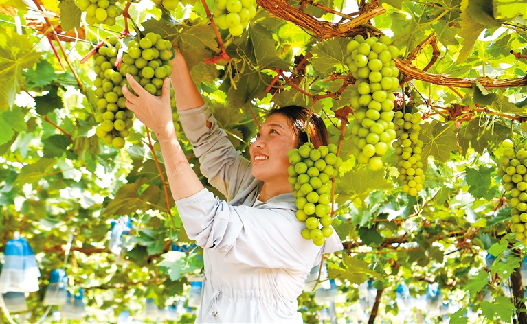 图③:在山东省枣庄市台儿庄区邳庄镇涛沟桥村,农民采摘葡萄。