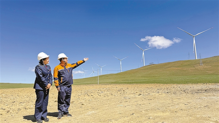 图为山南市税务干部在风力发电机组现场了解企业关于税收方面的相关情况。本报记者 丹增平措 摄
