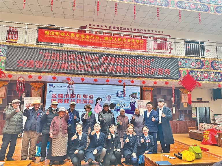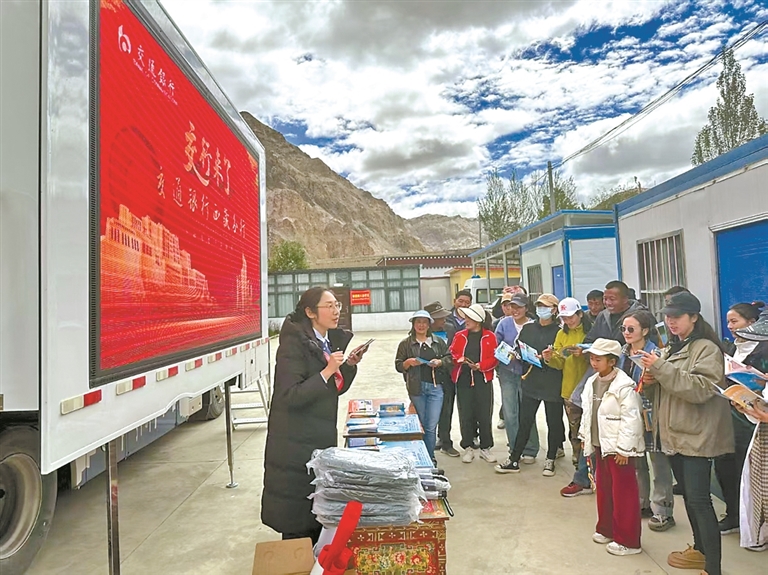 交通银行西藏分行营业部的工作人员走进乡村开展金融知识普及。
