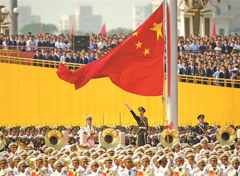 天安门广场举行隆重的升国旗仪式。新华社记者 陈晔华 摄
