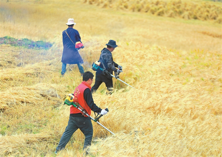 9月2日,昌都市丁青县色扎乡组织23名党员干部组成帮扶小队,开展秋收助农志愿服务。在田间地头,党员干部们分工协作,有条不紊地进行收割、搬运、晾晒,帮助卡通村缺乏劳动力的家庭抢收农作物。