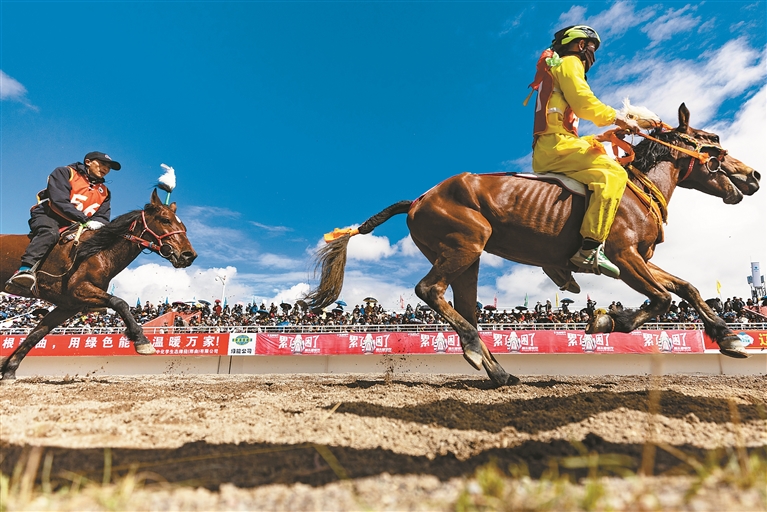 为期三天的2025年那曲市恰青赛马节于9月5日在西藏那曲市格萨尔赛马场开幕。赛马节除了传统赛马项目,还增设了抱石头、乌尔朵、拔河、押加等极具民族特色的群众性体育项目,为农牧民搭建起一个展示才华、切磋技艺的平台。