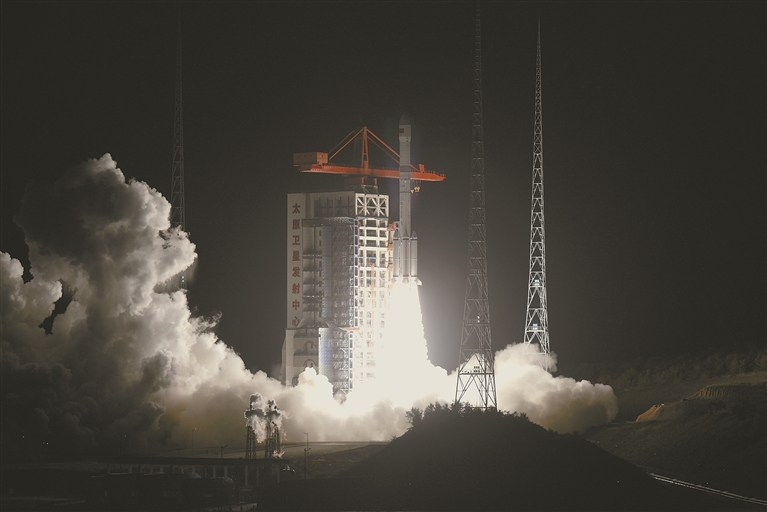 图为9月7日0时34分,我国在太原卫星发射中心使用长征六号改运载火箭,成功将遥感四十号03组卫星发射升空,卫星顺利进入预定轨道,发射任务获得圆满成功。