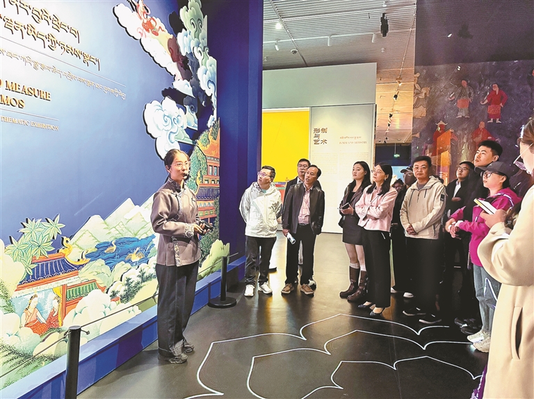 近日,西藏博物馆举办2025年“博物馆致敬教师”活动。教师代表们在专业讲解员带领下参观了《祥开万象——故宫与西藏文物联展》和《如意度量 五彩意境——西藏唐卡艺术主题展勉唐篇》,并参加馆校共建交流会。据悉,长期以来,西藏博物馆坚持推进馆校融合,通过流动展览、教育项目和文化课程,把文物资源送进校园,让师生近距离触摸历史。未来,西藏博物馆还将继续探索“博物馆+教育”新路径,让博物馆成为学校“第二课堂”,让校园成为文化传承的“延伸展厅”。图为教师代表们在西藏博物馆参观。本报记者 明吉 见习记者 冯琳琳 摄