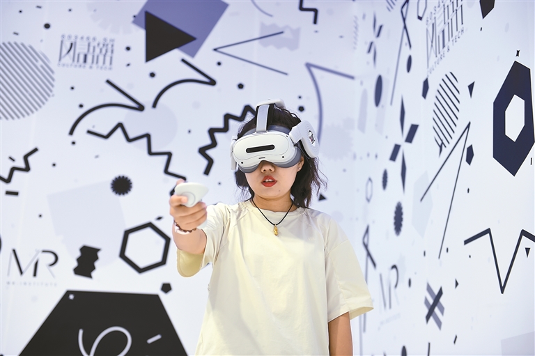 左图:9月11日,参展者在文旅服务专题展区海淀展厅体验沉浸式VR大空间项目。新华社记者 刘岭逸 摄