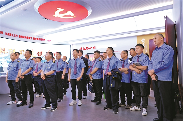 ?图为中国铁路青藏集团有限公司拉萨基础设施段党员代表在拉萨铁路地区党员党性党风党纪教育基地参观学习。