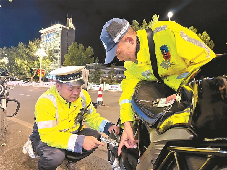 近日,拉萨市公安局交通管理支队开展专项整治工作,重点打击摩托车“飙车炸街”、非法改装等交通违法行为。图为交警查获一起摩托车非法改装排气筒。 本报记者 鹿丽娟 摄