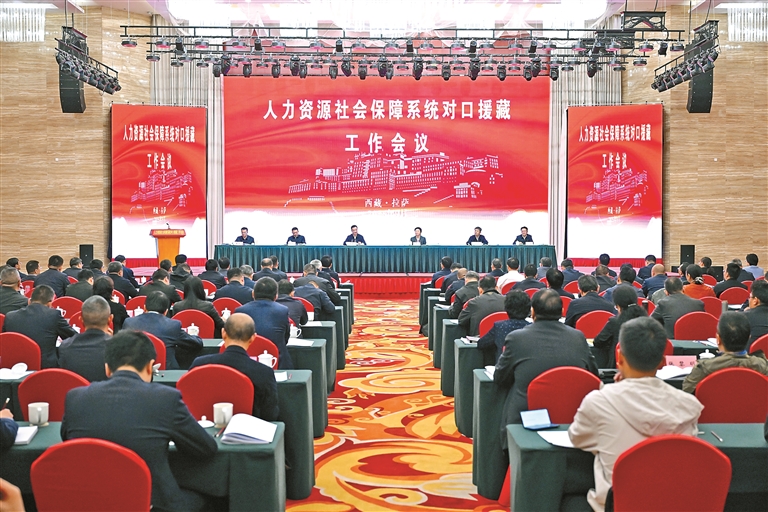 王晓萍代表人力资源社会保障部向自治区党委、政府长期以来对人社工作的关心支持表示感谢。她说,对口支援西藏是党中央从党和国家工作全局出发作出的重大战略决策,是先富帮后富、最终实现共同富裕的重大举措,是社会主义制度集中力量办大事显著优势的集中体现。人社系统深入学习贯彻习近平总书记关于西藏工作的重要指示和新时代党的治藏方略,坚持把援藏工作作为重大政治任务,全面服务西藏发展所需、民生所盼,聚焦稳定、发展、生态、强边四件大事,发挥人社职能优势,建机制聚合力,拓渠道稳就业,强培训提技能,聚人才激活力,优服务夯基础,为促进西藏经济社会高质量发展发挥了积极作用。在开启西藏新征程之际,以习近平同志为核心的党中央对建设社会主义现代化新西藏作出重大部署,对做好对口援藏工作提出新任务新要求。我们要坚持以习近平新时代中国特色社会主义思想为指导,深化就业稳藏,健全跨区域劳务协作机制,完善区外转移就业服务,精准开发就业岗位,在拓宽渠道和提升质量上实现新突破;深化人才强藏,聚焦西藏经济社会发展重要任务和重点领域,广泛搭建人才交流平台,优化“组团式”柔性支援,在引进培育和优化环境上展现新作为;深化富民兴藏,大力推动技能增收、社保惠民、服务便民等工作,在技能提升和公共服务上构建新支撑。