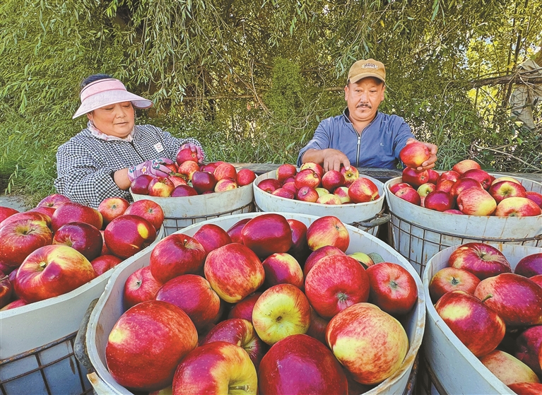 图为9月14日,林芝农垦嘎玛农业有限公司员工分拣丰收的苹果。