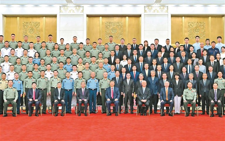 9月17日,党和国家领导人习近平、蔡奇等在北京人民大会堂接见中国人民抗日战争暨世界反法西斯战争胜利80周年纪念活动筹办工作各方面代表。新华社记者 翟健岚 摄