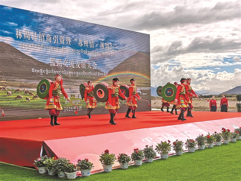 近日,林周县在边交林镇神秘树林成功举办招商引资暨“苏州情·林周行”援助交流发展大会。图为大会上的精彩节目。本报记者 刘斯宇 摄