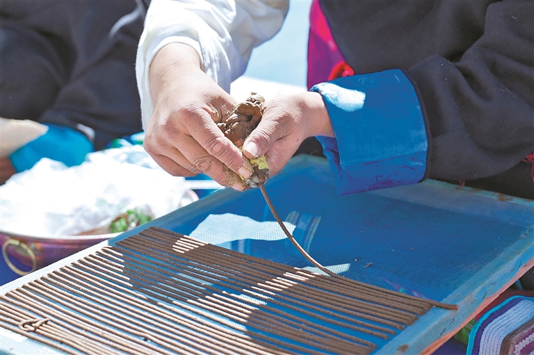 “今天我们带来了6种藏香文创产品,分别有安神、提神、清洁空气等系列,这些年我们除了在线下销售,还要感谢尼木县委、县政府积极与线上各大平台接洽,让我们的藏香通过线上销售,走出了尼木,让北京、南京、天津等城市的客户通过线上购买。所有藏香都是由县委、县政府组织的易地搬迁户制作,这让不少群众不仅能就近就业,还能照顾家里。特别感谢党和政府对藏香保护和发展所做的各项工作。”县级非物质文化遗产传承人洛桑旺堆在活动现场说。