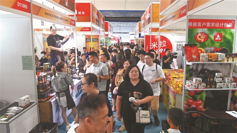 9月20日,第22届中国—东盟博览会迎来公众开放日,市民和游客纷纷前往南宁国际会展中心观展购物。