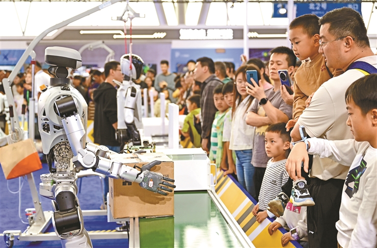 图④:9月20日,观众在2025世界制造业大会智能机器人展区参观。新华社记者 周牧 摄