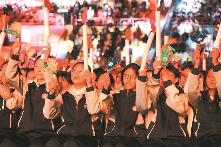 图③:闭幕式公益演出现场热情洋溢的学生们。