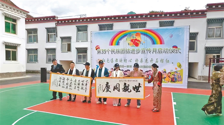 近日,洛隆县“红色昌都映初心 格桑花开石榴红”暨第35个民族团结进步宣传月启动仪式在硕督镇举行。来自全县各乡(镇)、各单位的干部代表、学生代表以及各族群众代表共计300人参加。本报记者 平措郎加 摄