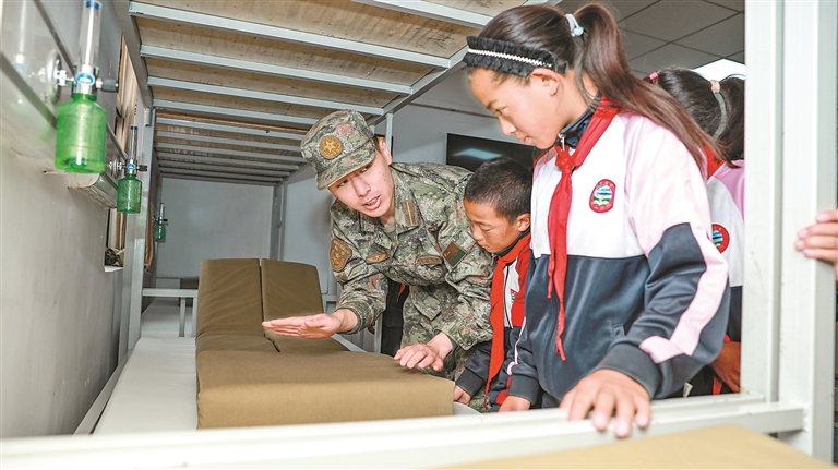 屏幕那头,孩子们好奇地提问:“叔叔,你们那里冷吗?”“你们那里会有高原反应吗?”官兵们耐心解答,还特意展示了高原防寒装具和制氧设备。