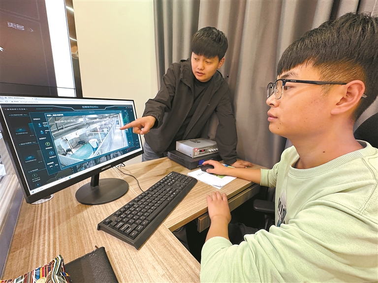 图为技术人员通过智慧养殖监控平台,远程实时查看猪场状况。本报记者 白玛泽旺 次仁平措 摄