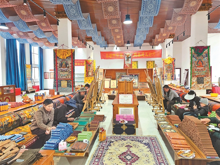 在政府持续的政策扶持、资源对接和市场推广助力下,合作社发展态势良好,销售渠道变宽,有效激活了桑珠荣村的发展潜能。目前,合作社共有成员12人,其中6名是唐卡画师,6名专职制作藏香。通过唐卡创作与藏香加工,合作社已实现盈利27万余元,不仅直接解决了12名村民的稳定就业问题,还为桑珠荣村赢得了“唐卡与藏香传承第一村”的美誉,成为当地文化赋能乡村振兴的典范。