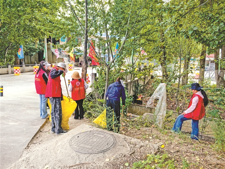 图为活动中,巾帼志愿服务队对318国道沿线、村内主干道、背街小巷及卫生死角进行重点清扫。